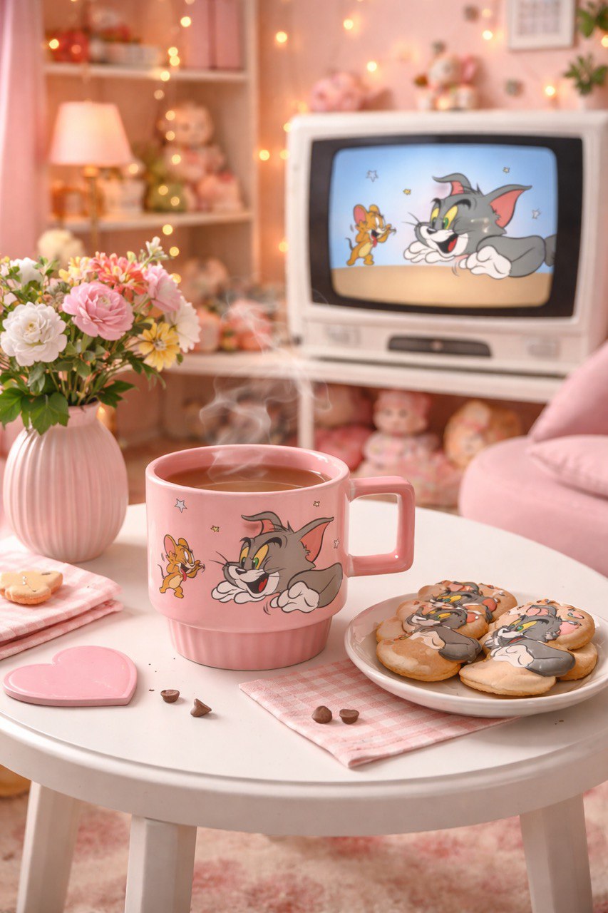 ماگ تام و جری رنگ صورتی