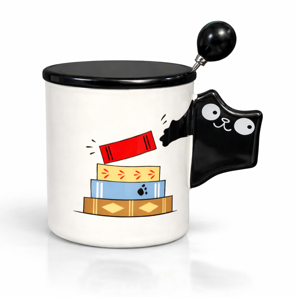 ماگ طرح گربه و کتاب